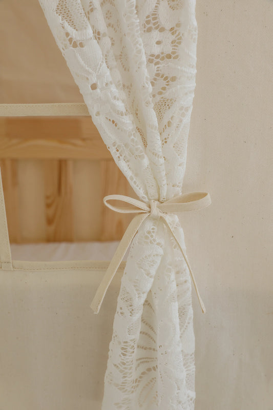 Moi Mili Mousseline Boho Bedhemel met kant voor Bedhuisje - Wit