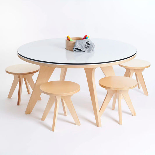 Drawin'Kids Drawin’table® XXL – Tekentafel van natuurlijk hout voor kinderen (Ø 90 cm)